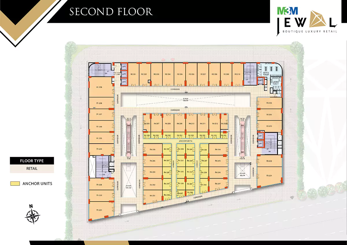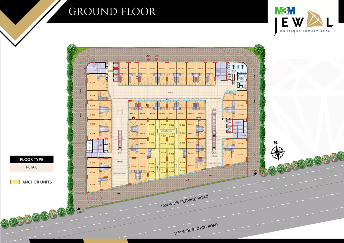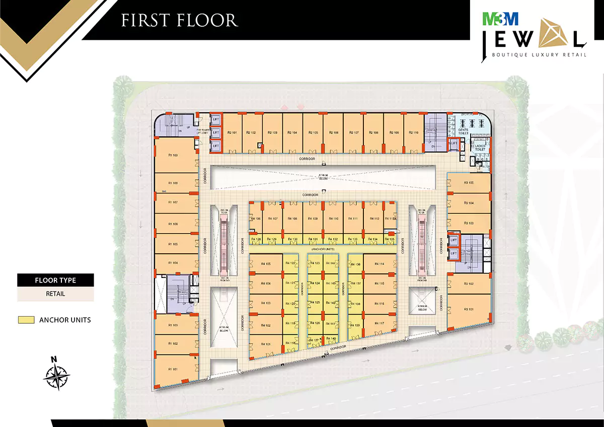 M3M Jewel is truly futuristic retail excellence with state of the art structure, world class double height shops facing MG road.